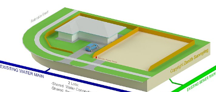 More commonly found in infill areas, is the Battle-axe subdivision. This is where a driveway is placed at the side of the existing house which gives access to the newly created rear block. Usually an old existing garage at the rear/side of the original house is demolished. A new car accommodation is provided at the rear of the existing house for its exclusive use. Any proposed dwelling to be built on the rear block would have its own car accommodation. The driveway in this scenario is then “Common Property” and both block owners would be responsible for its maintenance. If the original block width allows, then two separate driveways would always be preferable.